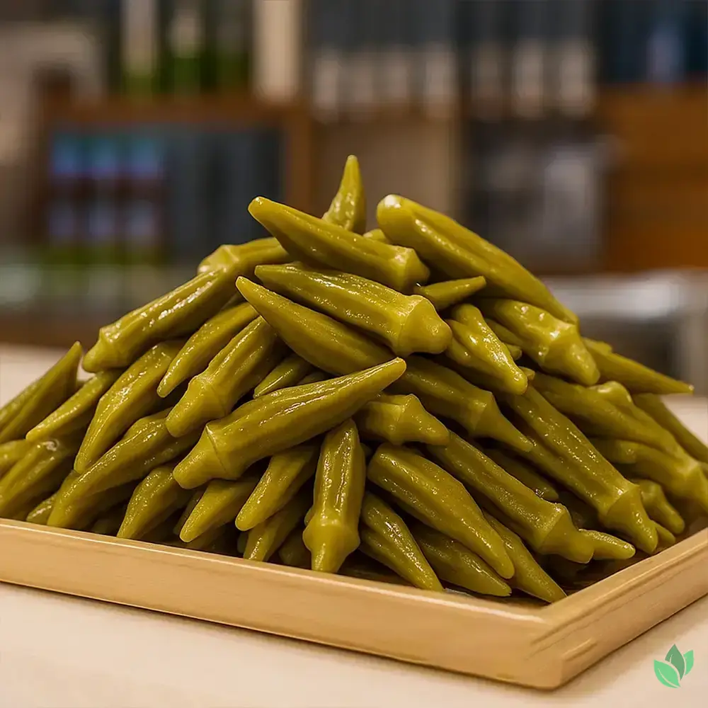 Servis ÖnerisiBamya Turşusu; et ve tavuk yemeklerinin yanında, zeytinyağlı tabaklarda, meze sofralarında veya salatalarda rahatlıkla kullanılabilir. Hafif ekşiliği ve kendine özgü aromasıyla yemeklere derinlik ve tazelik katar. Tek başına atıştırmalık olarak da değerlendirilebilecek kadar karakterli bir lezzettir.