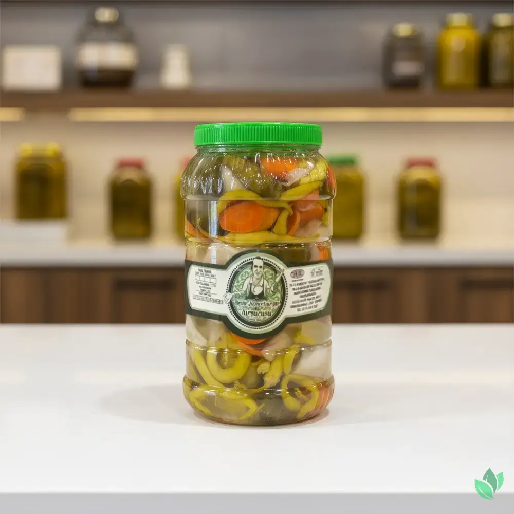 Doktor Türlüsü, içeriğindeki lahana, salatalık, havuç ve biber turşusunun bir araya gelmesiyle oluşan; doğal fermente lezzeti, renk çeşitliliği ve dengeli kıvamıyla sofralara zenginlik katan özel bir karışık turşu çeşididir. Tarihi Kemerburgaz Turşucusu markasına ait bu ürün, köklü üretim geleneği korunarak hazırlanmakta ve GuruSepeti güvencesiyle sizlere sunulmaktadır. Farklı sebzelerin tek bir bidonda dengeli şekilde buluşması, Doktor Türlüsü’nü hem lezzet hem de kullanım açısından ayrı bir yere taşır.
