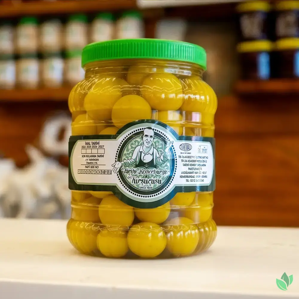 Tarihi Kemerburgaz Turşucusu markasına ait Erik Turşusu, 1 kg, 2 kg, 3 kg, 4kg ve 5 kg pet bidon ambalaj seçenekleriyle GuruSepeti üzerinden satışa sunulmaktadır.