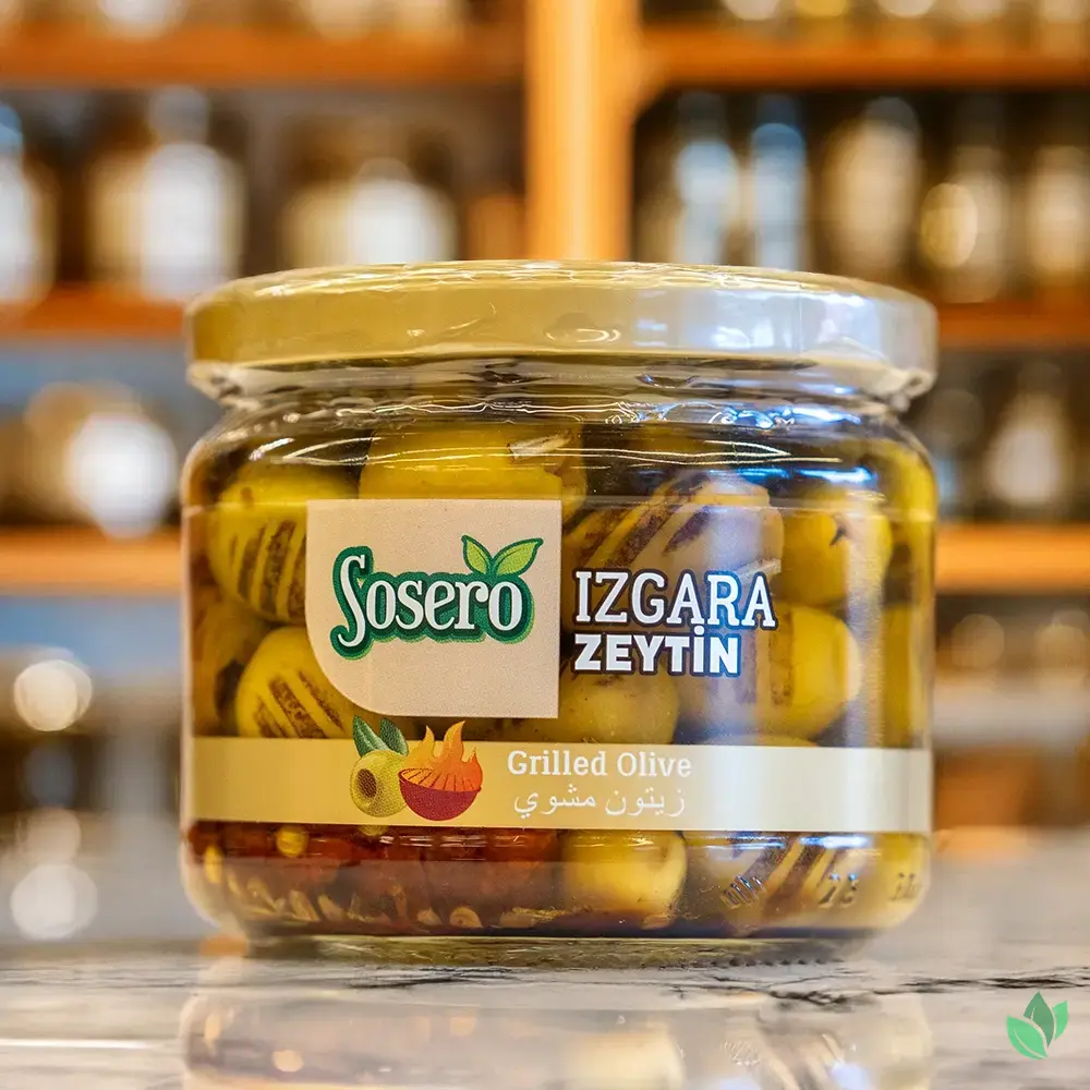 Izgara Zeytin, klasik yeşil zeytinden farklı olarak özel ızgaralarda kavrulup ekstra aroma verilerek hazırlanan özel bir üründür. İçeriğinde domates kurusu, sarımsak ve baharatların uyumu sayesinde hem zengin tat profili sunar hem de sofralarda farklılık yaratır.