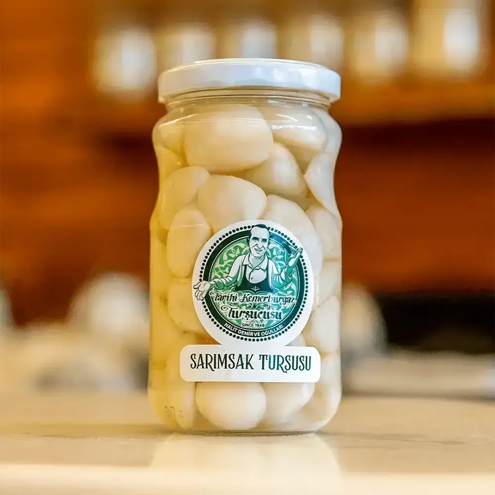 Sarımsak Turşusu (Soyulmuş), kabukları soyulmuş diş sarımsakların geleneksel salamura yöntemiyle hazırlanmış halidir. Sofralarda yardımcı bir tat olarak sıklıkla yer bulan bu ürün, keskin aromasıyla dikkat çeker. Güçlü yapısı ile yemeklere eşlik ederken, tek başına da tüketilebilecek kadar dengeli bir tada sahiptir. En ucuz satış fiyatları ile satın al fırsatıyla sunulan bu lezzetli seçenek, turşu severlerin beğenisine sunulmuştur.