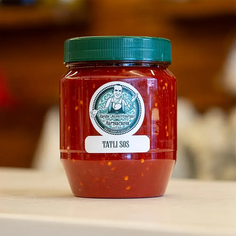 Tatlı Sos, hafif baharatlı ve dengeli bir yapıya sahiptir. Özellikle kırmızı et, tavuk, kızartma ve ızgara tabaklarına eşlik eden bu sos; yoğunluğu, kıvamı ve aromatik tadıyla fark yaratır. İçeriğindeki doğal baharatlar sayesinde gönül rahatlığıyla satın alabileceğiniz özel bir sostur.